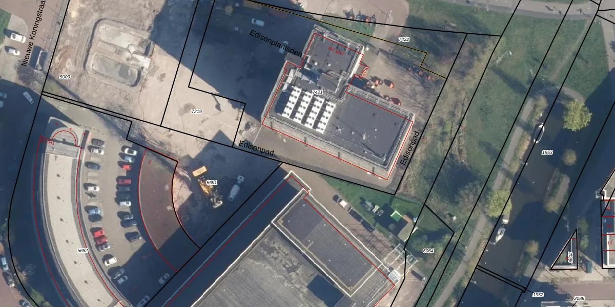 Het perceel waarop Edisonplantsoen 757 staat heeft een oppervlakte van 3315 m². Dit is een zeer groot perceel. De perceeloppervlakte wordt geregistreerd door het Kadaster. Gedetailleerde informatie over de maten van dit perceel kunt u vinden in het rapport Kadastrale kaart met maatvoering van Edisonplantsoen 757.