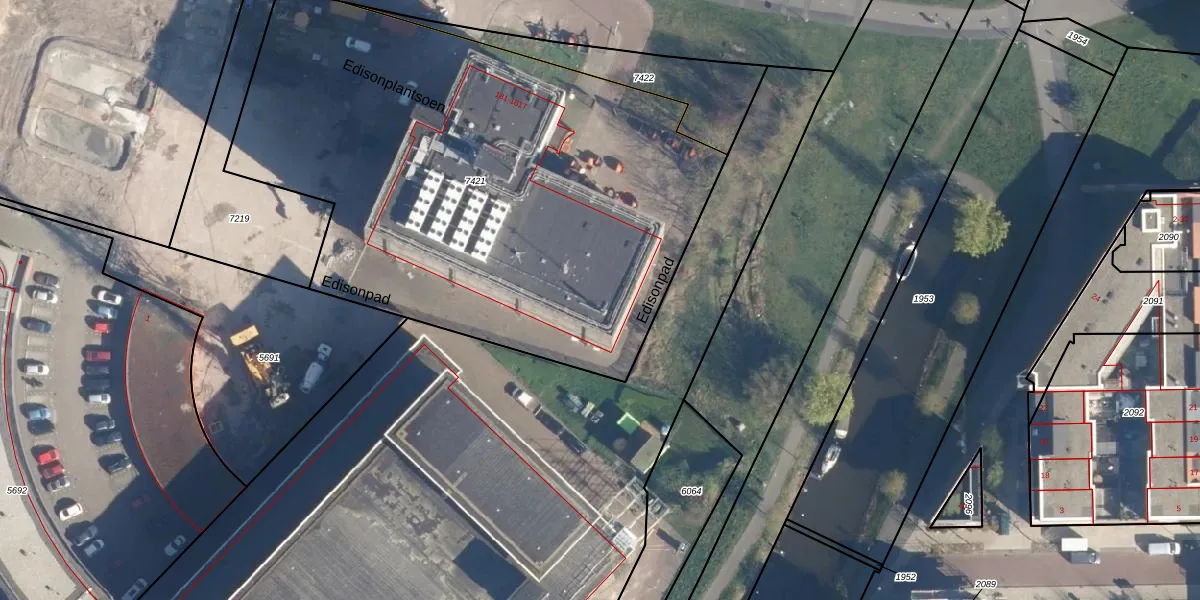Het perceel waarop Edisonplantsoen 799 staat heeft een oppervlakte van 3315 m². Dit is een zeer groot perceel. De perceeloppervlakte wordt geregistreerd door het Kadaster. Gedetailleerde informatie over de maten van dit perceel kunt u vinden in het rapport Kadastrale kaart met maatvoering van Edisonplantsoen 799.
