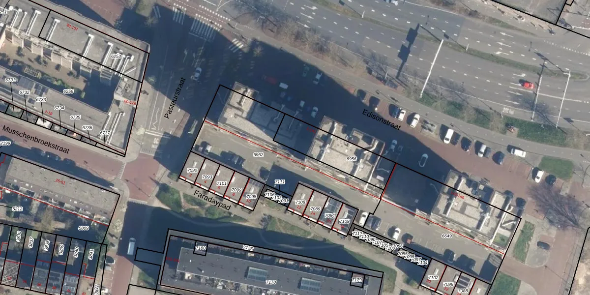 Edisonstraat 109 is gelegen op kadastraal perceel LDN01K6956. Deze kadastrale aanduiding is uniek en wordt gebruikt door het Kadaster om eigendomsrechten en andere zakelijke rechten vast te leggen. Het perceel maakt onderdeel uit van de kadastrale gemeente Leiden.