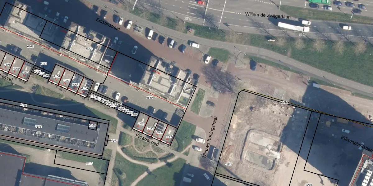 Het perceel waarop Edisonstraat 179 staat heeft een oppervlakte van 1150 m². Dit is een zeer groot perceel. De perceeloppervlakte wordt geregistreerd door het Kadaster. Gedetailleerde informatie over de maten van dit perceel kunt u vinden in het rapport Kadastrale kaart met maatvoering van Edisonstraat 179.