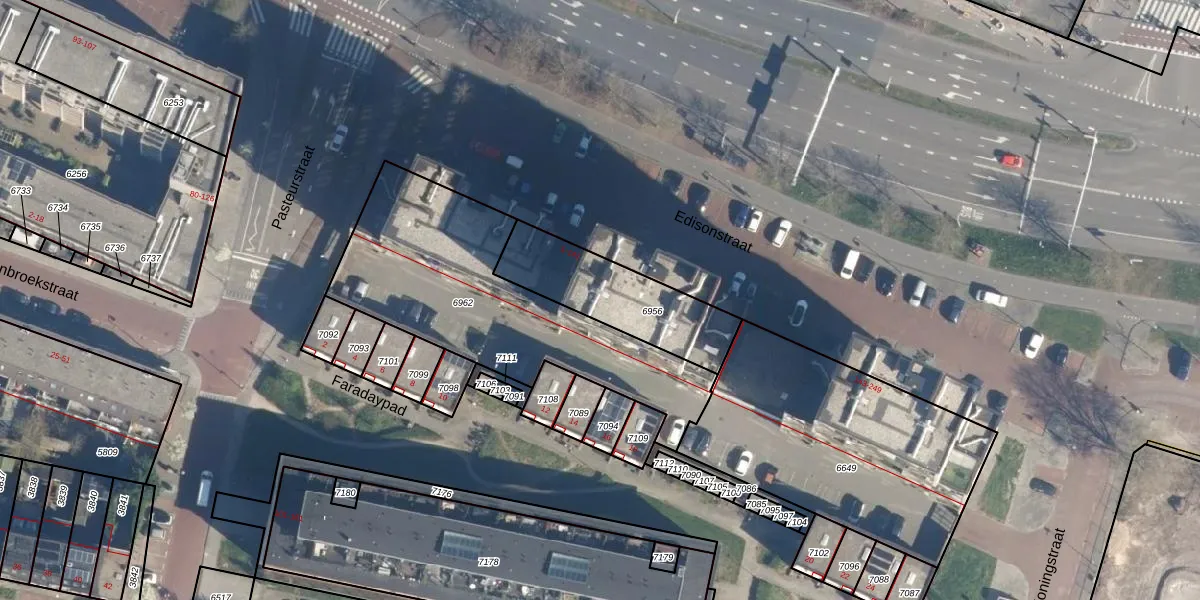 Het perceel waarop Edisonstraat 45 staat heeft een oppervlakte van 410 m². Dit is een groot perceel. De perceeloppervlakte wordt geregistreerd door het Kadaster. Gedetailleerde informatie over de maten van dit perceel kunt u vinden in het rapport Kadastrale kaart met maatvoering van Edisonstraat 45.