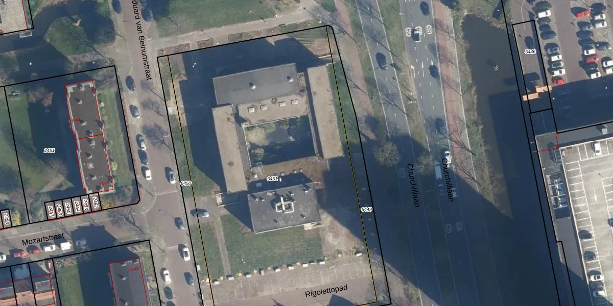 Het adres is gelegen op perceel 6451 in de sectie O en de kadastrale gemeente Leiden. De kadastrale aanduiding is aldus LDN01-O-6451. De oppervlakte van het perceel is 4873 m². Dat is groter dan gemiddeld in Leiden, waar de gemiddelde perceeloppervlakte op 703,94 m² ligt. De grootste perceeloppervlakte in de kadastrale gemeente is 51,8 ha. De kleinste oppervlakte bedraagt 0 m². Er zijn 366 adressen aanwezig op het perceel. De huidige grenzen van het perceel zijn digitaal in de Basisregistratie Kadaster (BRK) geregistreerd op 24-02-2026.