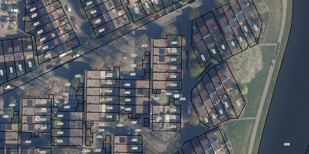 Het perceel waarop Eendenzijde 9 staat heeft een oppervlakte van 100 m². Dit is een middelgroot perceel. De perceeloppervlakte wordt geregistreerd door het Kadaster. Gedetailleerde informatie over de maten van dit perceel kunt u vinden in het rapport Kadastrale kaart met maatvoering van Eendenzijde 9.