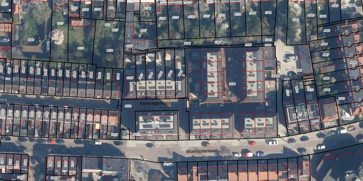 Het perceel waarop Eendragtplaats 1 staat heeft een oppervlakte van 156 m². Dit is een middelgroot perceel. De perceeloppervlakte wordt geregistreerd door het Kadaster. Gedetailleerde informatie over de maten van dit perceel kunt u vinden in het rapport Kadastrale kaart met maatvoering van Eendragtplaats 1.