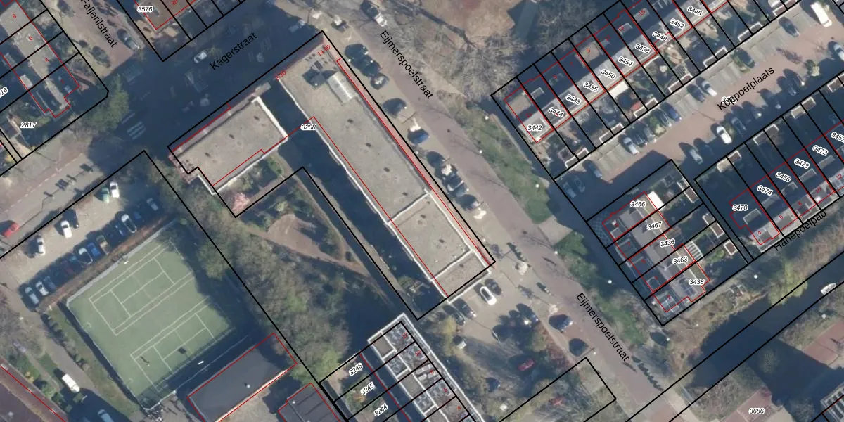 Eijmerspoelstraat 46 is gelegen op kadastraal perceel LDN01P3208. Deze kadastrale aanduiding is uniek en wordt gebruikt door het Kadaster om eigendomsrechten en andere zakelijke rechten vast te leggen. Het perceel maakt onderdeel uit van de kadastrale gemeente Leiden.