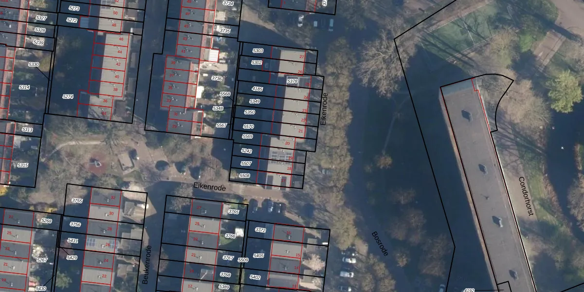 Gebruik de zoekbalk of klik op een perceel voor informatie over de adressen binnen dit perceel.