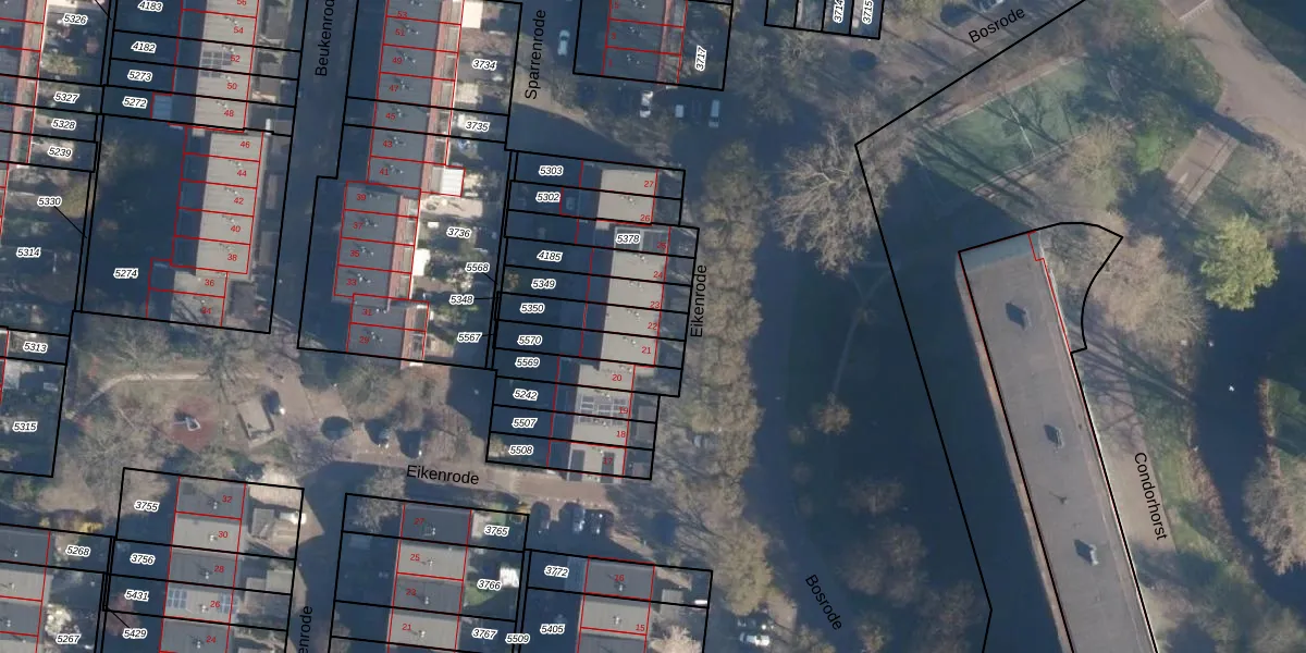 Gebruik de zoekbalk of klik op een perceel voor informatie over de adressen binnen dit perceel.
