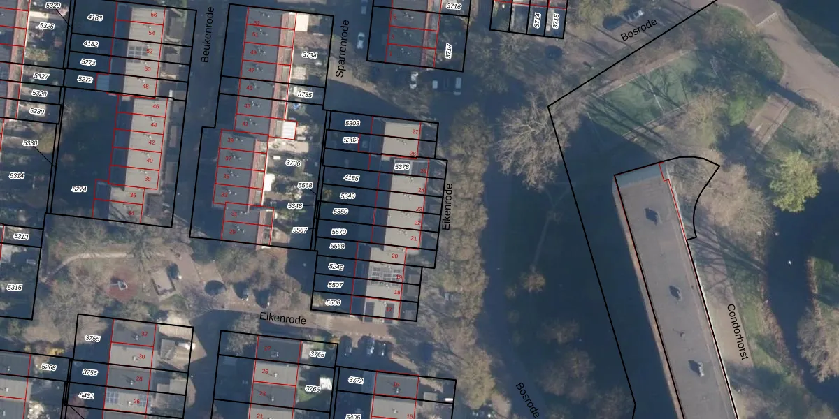 Eikenrode 23 is gelegen op kadastraal perceel LDN01S5349. Deze kadastrale aanduiding is uniek en wordt gebruikt door het Kadaster om eigendomsrechten en andere zakelijke rechten vast te leggen. Het perceel maakt onderdeel uit van de kadastrale gemeente Leiden.
