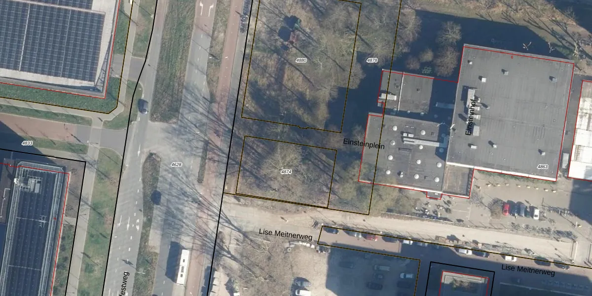 Einsteinplein 13-F is gelegen op kadastraal perceel LDN01X4874. Deze kadastrale aanduiding is uniek en wordt gebruikt door het Kadaster om eigendomsrechten en andere zakelijke rechten vast te leggen. Het perceel maakt onderdeel uit van de kadastrale gemeente Leiden.