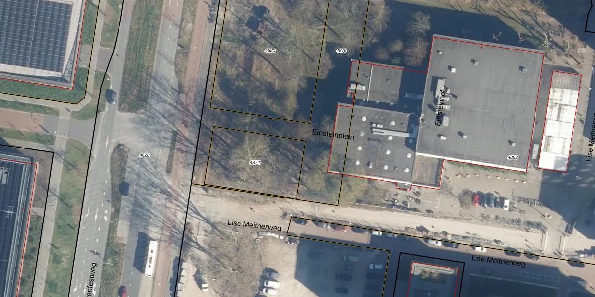 Einsteinplein 15 is gelegen op kadastraal perceel LDN01X4874. Deze kadastrale aanduiding is uniek en wordt gebruikt door het Kadaster om eigendomsrechten en andere zakelijke rechten vast te leggen. Het perceel maakt onderdeel uit van de kadastrale gemeente Leiden.