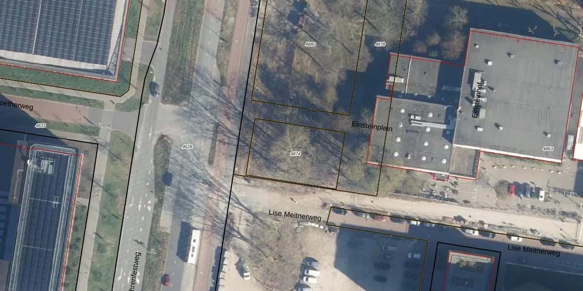 Einsteinplein 57 is gelegen op kadastraal perceel LDN01X4874. Deze kadastrale aanduiding is uniek en wordt gebruikt door het Kadaster om eigendomsrechten en andere zakelijke rechten vast te leggen. Het perceel maakt onderdeel uit van de kadastrale gemeente Leiden.