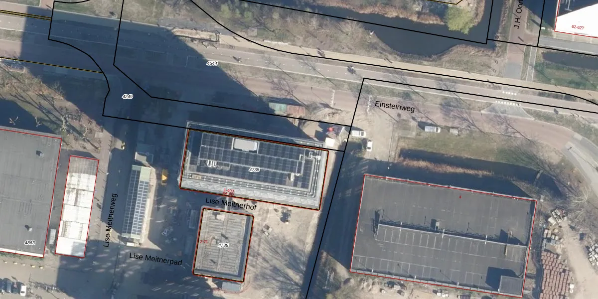 Het perceel waarop Einsteinweg 4-A staat heeft een oppervlakte van 939 m². Dit is een groot perceel. De perceeloppervlakte wordt geregistreerd door het Kadaster. Gedetailleerde informatie over de maten van dit perceel kunt u vinden in het rapport Kadastrale kaart met maatvoering van Einsteinweg 4-A.