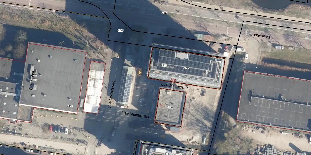 Het perceel waarop Einsteinweg 4-D staat heeft een oppervlakte van 939 m². Dit is een groot perceel. De perceeloppervlakte wordt geregistreerd door het Kadaster. Gedetailleerde informatie over de maten van dit perceel kunt u vinden in het rapport Kadastrale kaart met maatvoering van Einsteinweg 4-D.