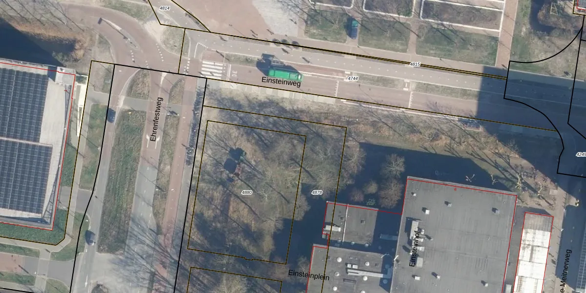 Einsteinweg 54 is gelegen op kadastraal perceel LDN01X4880. Deze kadastrale aanduiding is uniek en wordt gebruikt door het Kadaster om eigendomsrechten en andere zakelijke rechten vast te leggen. Het perceel maakt onderdeel uit van de kadastrale gemeente Leiden.