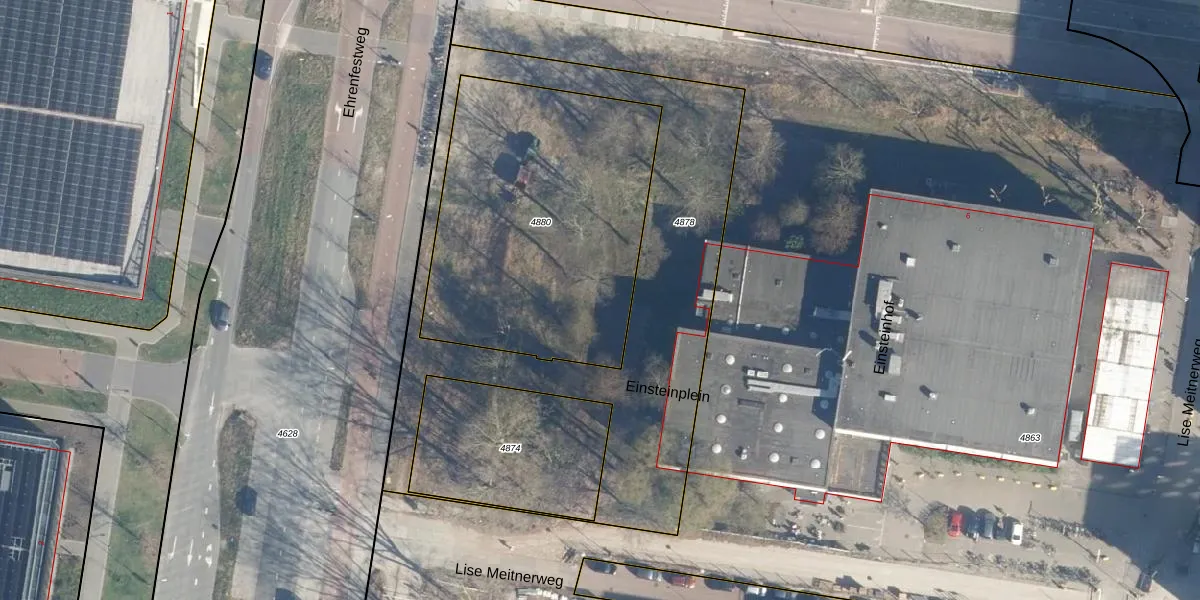 Einsteinweg 54-E is gelegen op kadastraal perceel LDN01X4880. Deze kadastrale aanduiding is uniek en wordt gebruikt door het Kadaster om eigendomsrechten en andere zakelijke rechten vast te leggen. Het perceel maakt onderdeel uit van de kadastrale gemeente Leiden.