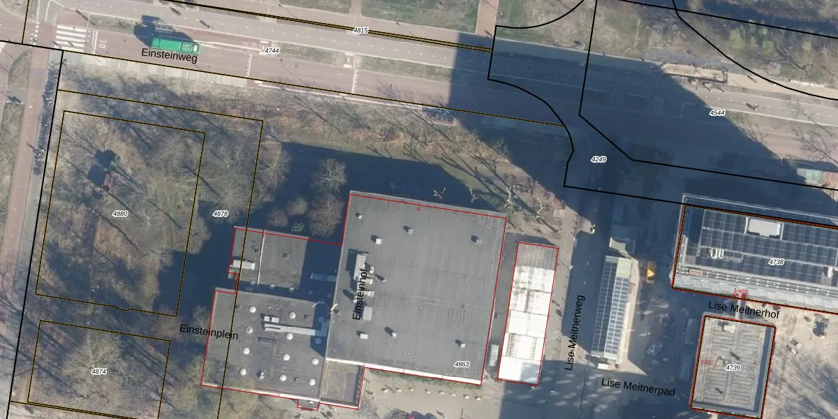 Einsteinweg 6 is gelegen op kadastraal perceel LDN01X4863. Deze kadastrale aanduiding is uniek en wordt gebruikt door het Kadaster om eigendomsrechten en andere zakelijke rechten vast te leggen. Het perceel maakt onderdeel uit van de kadastrale gemeente Leiden.