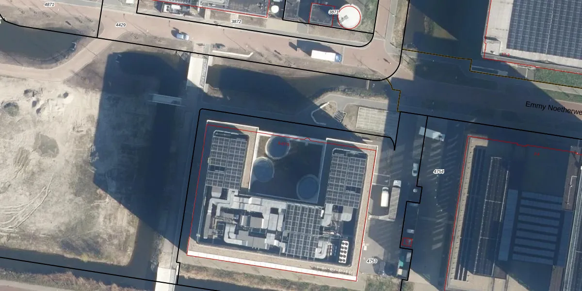 Het perceel waarop Emmy Noetherweg 6 staat heeft een oppervlakte van 4810 m². Dit is een zeer groot perceel. De perceeloppervlakte wordt geregistreerd door het Kadaster. Gedetailleerde informatie over de maten van dit perceel kunt u vinden in het rapport Kadastrale kaart met maatvoering van Emmy Noetherweg 6.