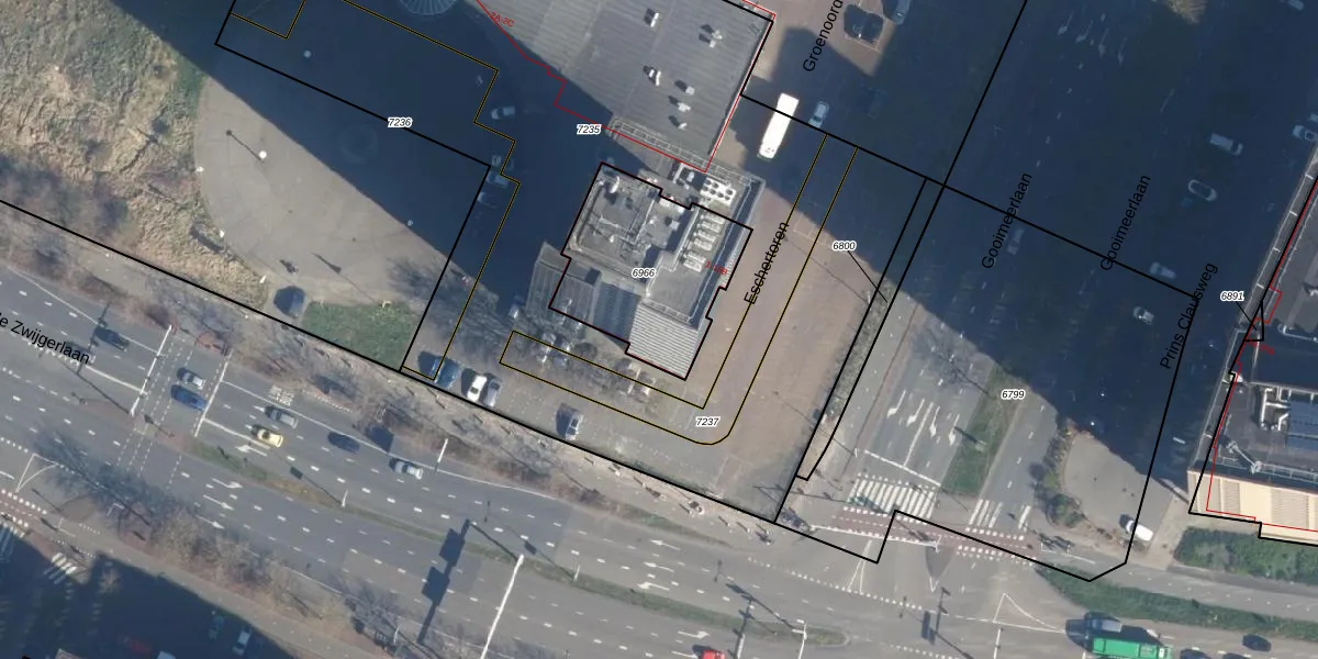 Het perceel waarop het adres ligt is LDN01-K-6966. De afkorting 'LDN01' staat voor kadastrale gemeente Leiden. De gemiddelde perceelgrootte in Leiden is 704,75 m². Dit perceel is kleiner: de perceeloppervlakte bedraagt 576 m². Het kleinste perceel in de kadastrale gemeente is 0 m² groot. De grootste perceeloppervlakte is 51,8 ha. Op het perceel zijn 93 adressen aanwezig. De huidige grenzen van het perceel zijn digitaal in de Basisregistratie Kadaster (BRK) geregistreerd op 30-04-2015.