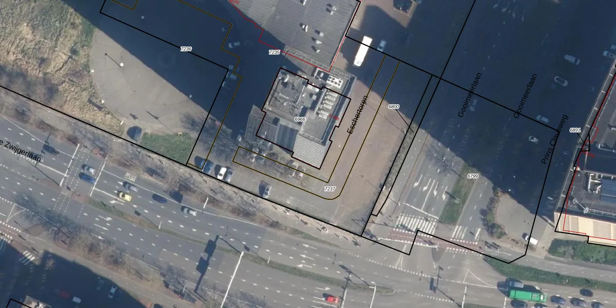 Het perceel waarop Eschertoren 2-C staat heeft een oppervlakte van 576 m². Dit is een groot perceel. De perceeloppervlakte wordt geregistreerd door het Kadaster. Gedetailleerde informatie over de maten van dit perceel kunt u vinden in het rapport Kadastrale kaart met maatvoering van Eschertoren 2-C.
