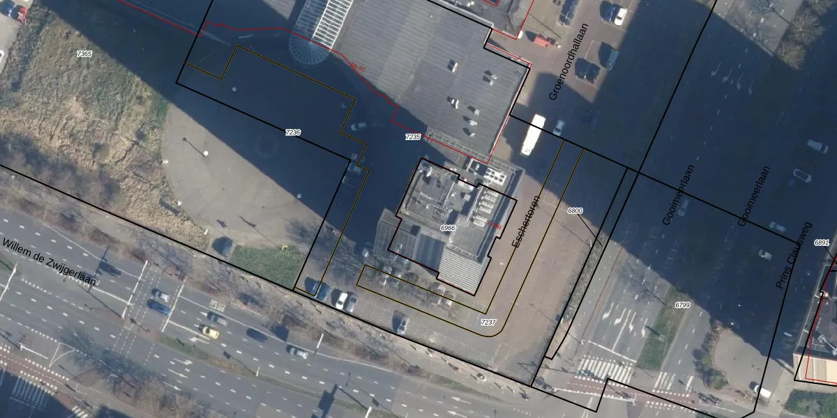 Het perceel waarop Eschertoren 6-C staat heeft een oppervlakte van 576 m². Dit is een groot perceel. De perceeloppervlakte wordt geregistreerd door het Kadaster. Gedetailleerde informatie over de maten van dit perceel kunt u vinden in het rapport Kadastrale kaart met maatvoering van Eschertoren 6-C.
