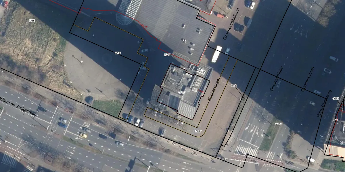 Het perceel waarop Eschertoren 6-D staat heeft een oppervlakte van 576 m². Dit is een groot perceel. De perceeloppervlakte wordt geregistreerd door het Kadaster. Gedetailleerde informatie over de maten van dit perceel kunt u vinden in het rapport Kadastrale kaart met maatvoering van Eschertoren 6-D.
