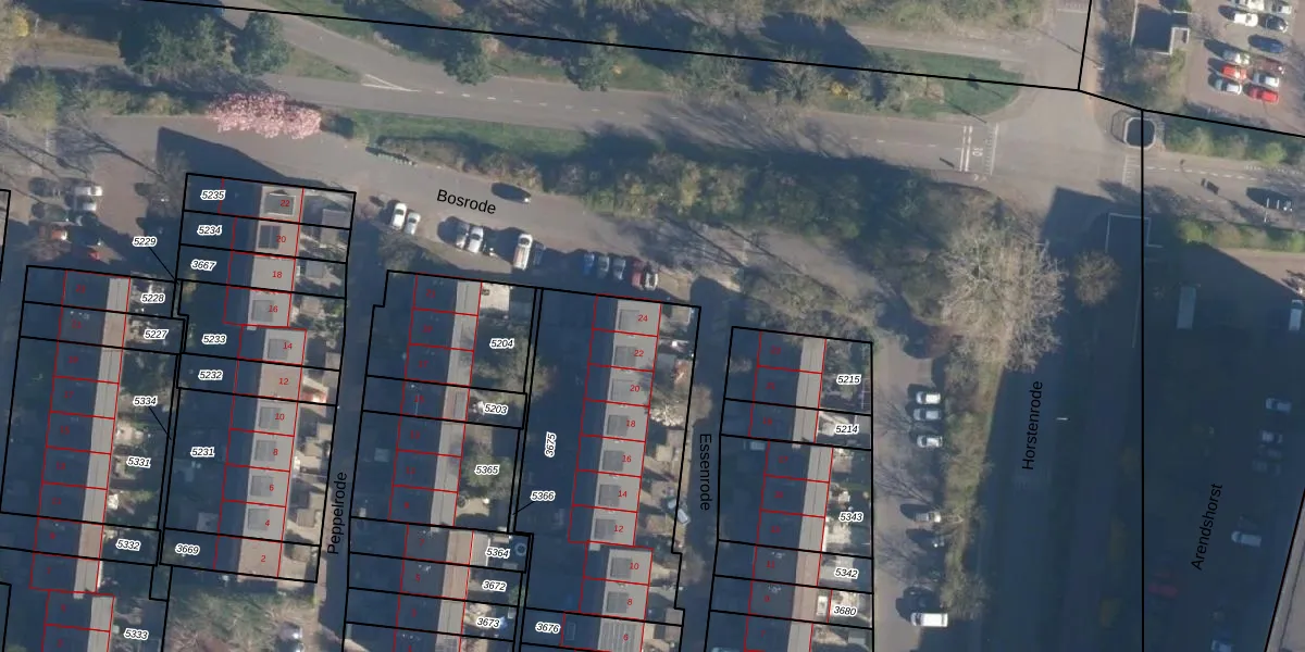 Essenrode 24 is gelegen op kadastraal perceel LDN01S3675. Deze kadastrale aanduiding is uniek en wordt gebruikt door het Kadaster om eigendomsrechten en andere zakelijke rechten vast te leggen. Het perceel maakt onderdeel uit van de kadastrale gemeente Leiden.
