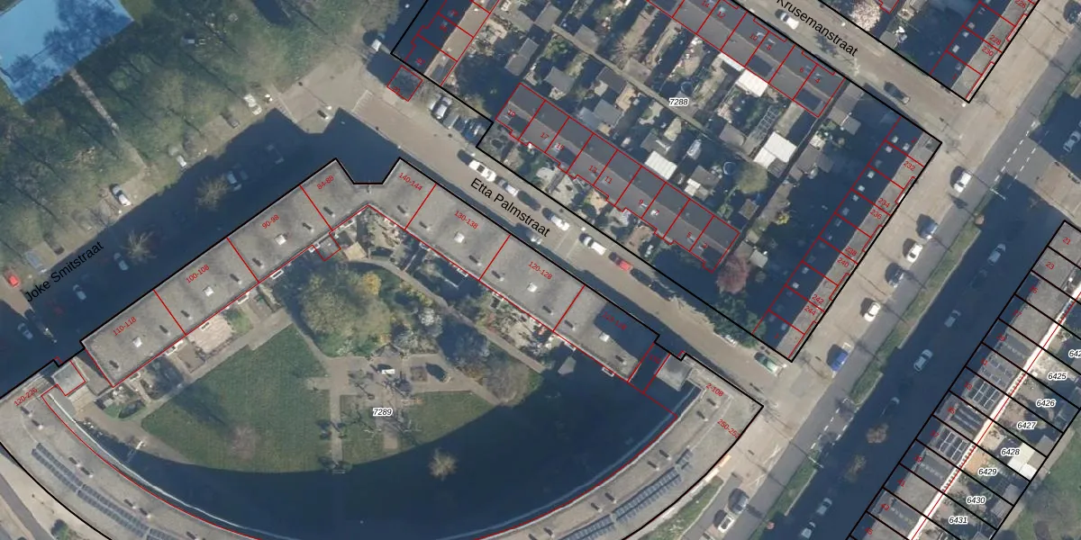 Etta Palmstraat 122 is gelegen op kadastraal perceel LDN01W7289. Deze kadastrale aanduiding is uniek en wordt gebruikt door het Kadaster om eigendomsrechten en andere zakelijke rechten vast te leggen. Het perceel maakt onderdeel uit van de kadastrale gemeente Leiden.