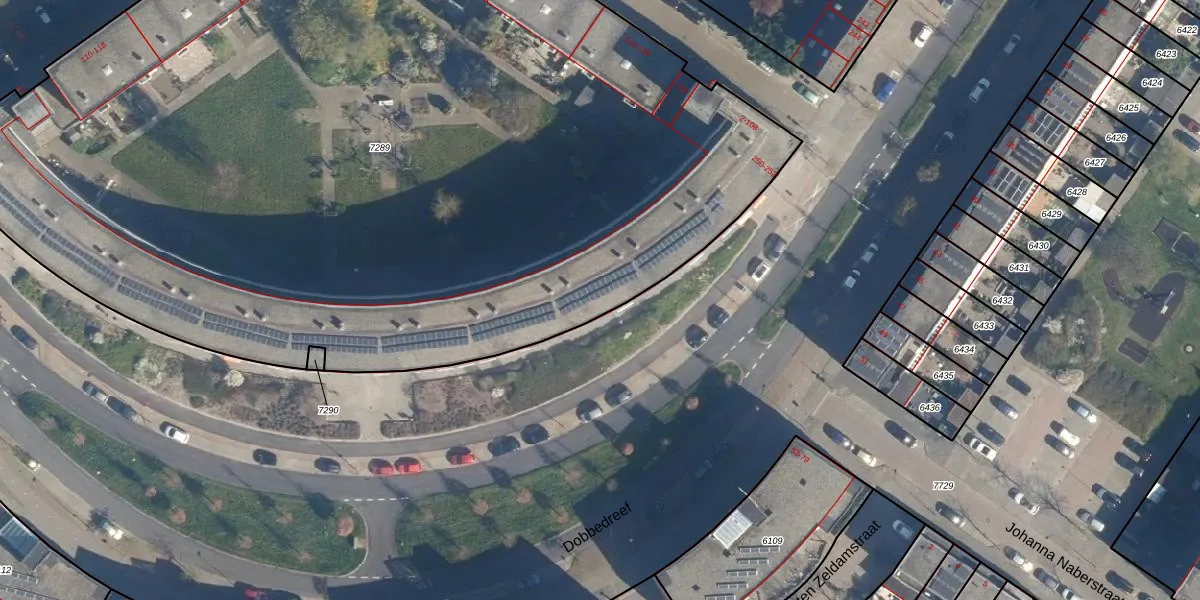 Het adres ligt op het perceel LDN01-W-7289, dat zich in de kadastrale gemeente Leiden bevindt. De oppervlakte van het perceel is 7450 m². Dat is groter dan gemiddeld in Leiden, waar de gemiddelde perceeloppervlakte op 703,94 m² ligt. De grootste perceeloppervlakte in de kadastrale gemeente is 51,8 ha. De kleinste oppervlakte bedraagt 0 m². Er zijn 145 adressen aanwezig op het perceel. De laatste wijziging in het de Basisregistratie Kadaster (BRK) was op 29-08-2003.