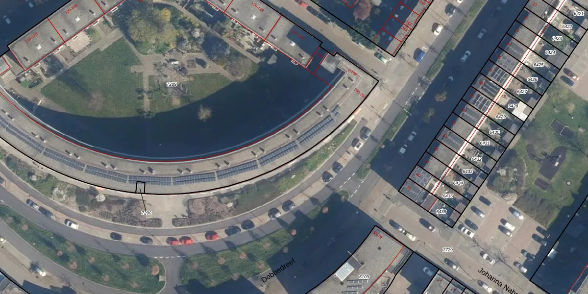 Het adres ligt op het perceel LDN01-W-7289, dat zich in de kadastrale gemeente Leiden bevindt. De oppervlakte van het perceel is 7450 m². Dat is groter dan gemiddeld in Leiden, waar de gemiddelde perceeloppervlakte op 703,94 m² ligt. De grootste perceeloppervlakte in de kadastrale gemeente is 51,8 ha. De kleinste oppervlakte bedraagt 0 m². Op het perceel zijn 145 adressen aanwezig. De laatste wijziging in het de Basisregistratie Kadaster (BRK) was op 29-08-2003.