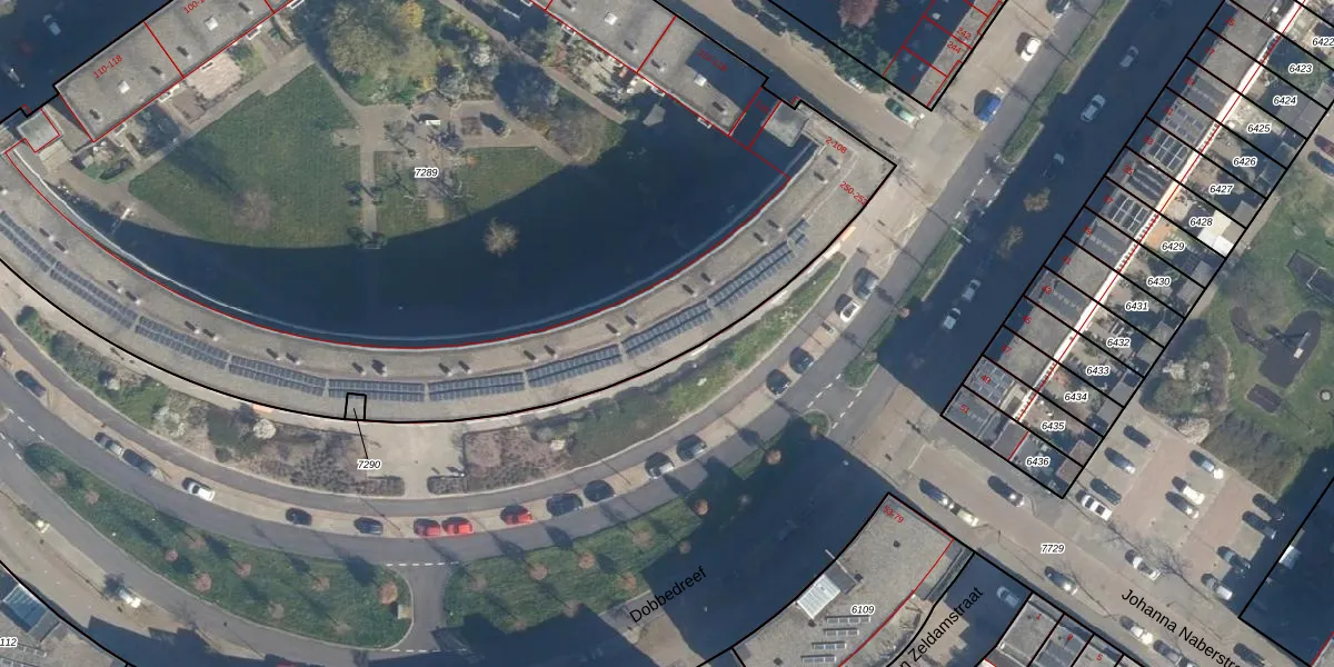Het adres ligt op het perceel LDN01-W-7289, dat zich in de kadastrale gemeente Leiden bevindt. De oppervlakte van het perceel is 7450 m². Dat is groter dan gemiddeld in Leiden, waar de gemiddelde perceeloppervlakte op 703,94 m² ligt. De grootste perceeloppervlakte in de kadastrale gemeente is 51,8 ha. De kleinste oppervlakte bedraagt 0 m². Op het perceel zijn 145 adressen aanwezig. In de Basisregistratie Kadaster (BRK) werden de grenzen van het perceel geregistreerd op 29-08-2003.