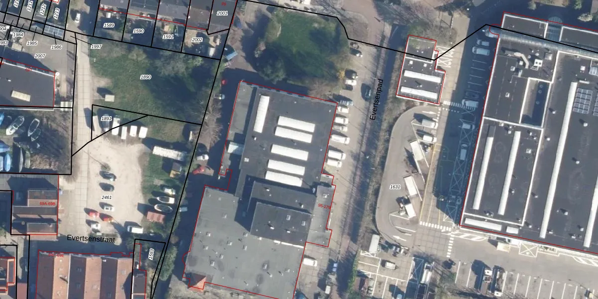 Het perceel waarop Evertsenstraat 173 staat heeft een oppervlakte van 1,6 ha. Dit is een zeer groot perceel. De perceeloppervlakte wordt geregistreerd door het Kadaster. Gedetailleerde informatie over de maten van dit perceel kunt u vinden in het rapport Kadastrale kaart met maatvoering van Evertsenstraat 173.