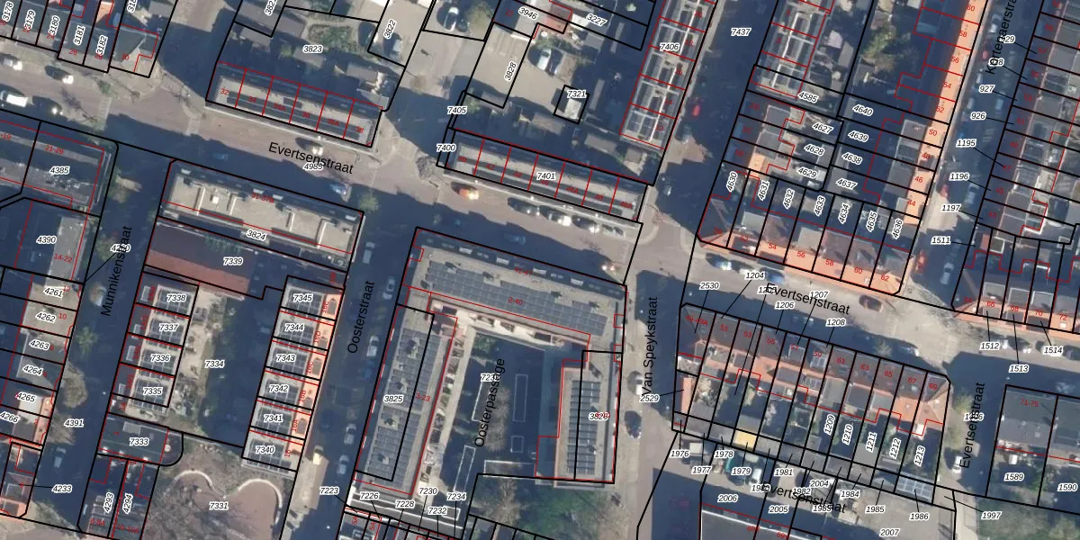 Het perceel waarop Evertsenstraat 45 staat heeft een oppervlakte van 1618 m². Dit is een zeer groot perceel. De perceeloppervlakte wordt geregistreerd door het Kadaster. Gedetailleerde informatie over de maten van dit perceel kunt u vinden in het rapport Kadastrale kaart met maatvoering van Evertsenstraat 45.