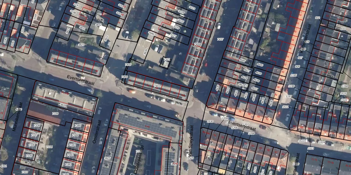 Het perceel waarop Evertsenstraat 48 staat heeft een oppervlakte van 269 m². Dit is een middelgroot perceel. De perceeloppervlakte wordt geregistreerd door het Kadaster. Gedetailleerde informatie over de maten van dit perceel kunt u vinden in het rapport Kadastrale kaart met maatvoering van Evertsenstraat 48.
