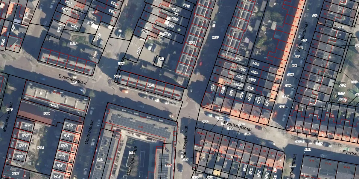 Evertsenstraat 48-A is gelegen op kadastraal perceel LDN01K7401. Deze kadastrale aanduiding is uniek en wordt gebruikt door het Kadaster om eigendomsrechten en andere zakelijke rechten vast te leggen. Het perceel maakt onderdeel uit van de kadastrale gemeente Leiden.