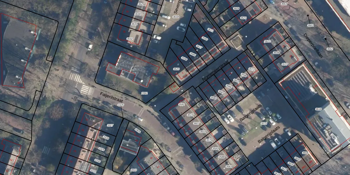 Faljerilstraat 19 is gelegen op kadastraal perceel LDN01P3659. Deze kadastrale aanduiding is uniek en wordt gebruikt door het Kadaster om eigendomsrechten en andere zakelijke rechten vast te leggen. Het perceel maakt onderdeel uit van de kadastrale gemeente Leiden.