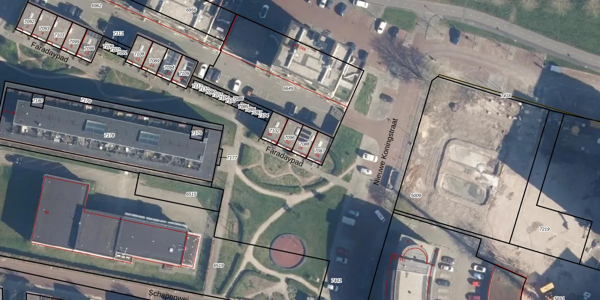 Het perceel waarop Faradaypad 24 staat heeft een oppervlakte van 53 m². Dit is een klein perceel. De perceeloppervlakte wordt geregistreerd door het Kadaster. Gedetailleerde informatie over de maten van dit perceel kunt u vinden in het rapport Kadastrale kaart met maatvoering van Faradaypad 24.