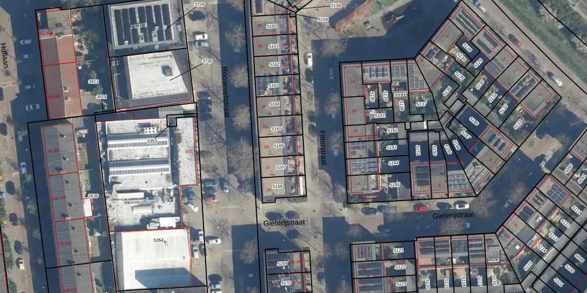 Fitterstraat 29 is gelegen op kadastraal perceel LDN01O5166. Deze kadastrale aanduiding is uniek en wordt gebruikt door het Kadaster om eigendomsrechten en andere zakelijke rechten vast te leggen. Het perceel maakt onderdeel uit van de kadastrale gemeente Leiden.