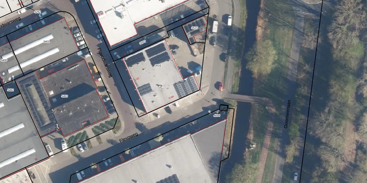 Flevoweg 5-D is gelegen op kadastraal perceel LDN01S3516. Deze kadastrale aanduiding is uniek en wordt gebruikt door het Kadaster om eigendomsrechten en andere zakelijke rechten vast te leggen. Het perceel maakt onderdeel uit van de kadastrale gemeente Leiden.