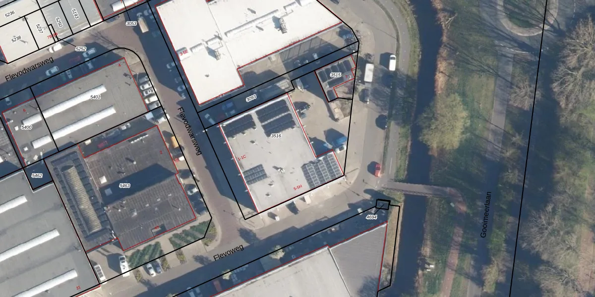 Flevoweg 5-E is gelegen op kadastraal perceel LDN01S3516. Deze kadastrale aanduiding is uniek en wordt gebruikt door het Kadaster om eigendomsrechten en andere zakelijke rechten vast te leggen. Het perceel maakt onderdeel uit van de kadastrale gemeente Leiden.