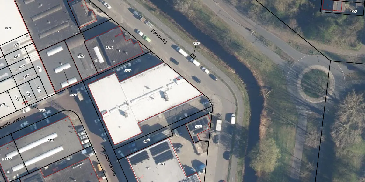 Het perceel waarop Flevoweg 9-H staat heeft een oppervlakte van 2093 m². Dit is een zeer groot perceel. De perceeloppervlakte wordt geregistreerd door het Kadaster. Gedetailleerde informatie over de maten van dit perceel kunt u vinden in het rapport Kadastrale kaart met maatvoering van Flevoweg 9-H.