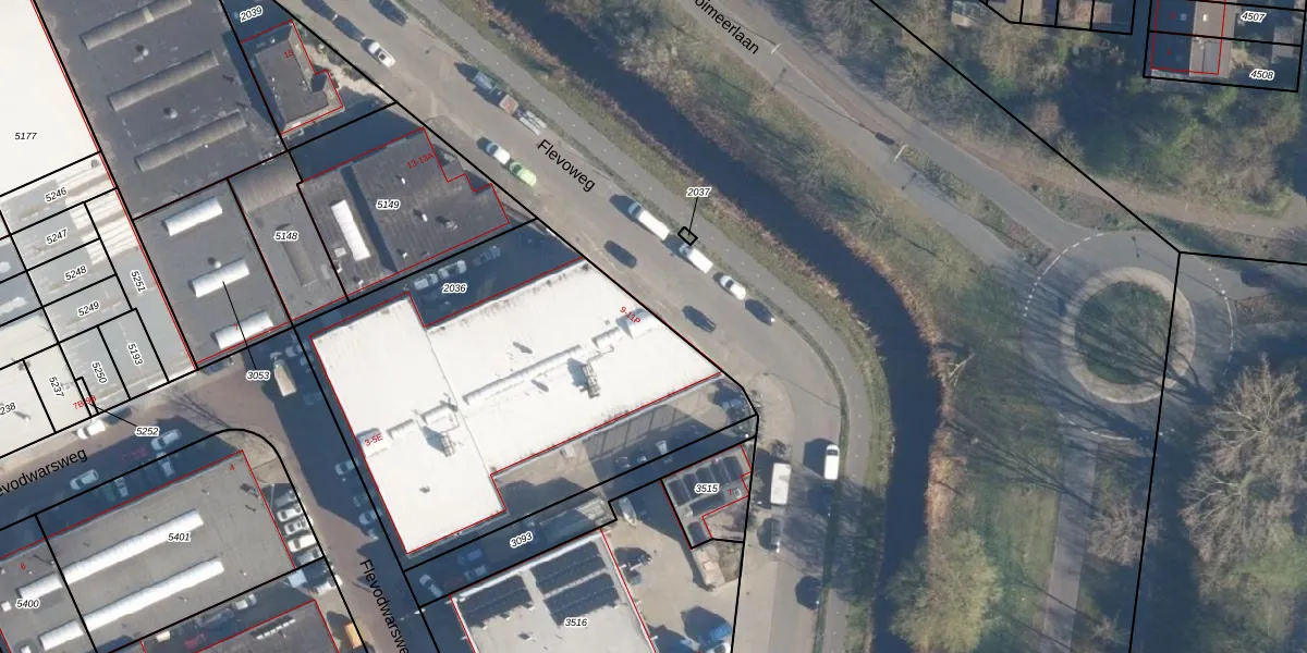 Het perceel waarop Flevoweg 9-D staat heeft een oppervlakte van 2093 m². Dit is een zeer groot perceel. De perceeloppervlakte wordt geregistreerd door het Kadaster. Gedetailleerde informatie over de maten van dit perceel kunt u vinden in het rapport Kadastrale kaart met maatvoering van Flevoweg 9-D.