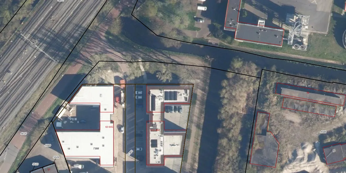 Het adres is gelegen op perceel 7383 in de sectie K en de kadastrale gemeente Leiden. De kadastrale aanduiding is aldus LDN01-K-7383. Het perceel is met 1856 m² relatief groot. Het gemiddelde ligt in de kadastrale gemeente Leiden op 703,94 m². Het grootste perceel in de kadastrale gemeente is 51,8 ha. Het kleinste perceel heeft een oppervlakte van 0 m². Op het perceel liggen in totaal 23 adressen. De huidige grenzen van het perceel zijn digitaal in de Basisregistratie Kadaster (BRK) geregistreerd op 18-10-2022.