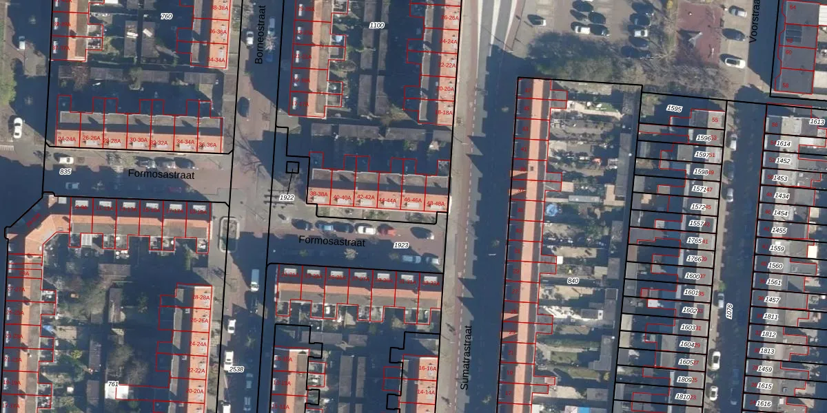 Formosastraat 46 is gelegen op kadastraal perceel LDN01N1100. Deze kadastrale aanduiding is uniek en wordt gebruikt door het Kadaster om eigendomsrechten en andere zakelijke rechten vast te leggen. Het perceel maakt onderdeel uit van de kadastrale gemeente Leiden.