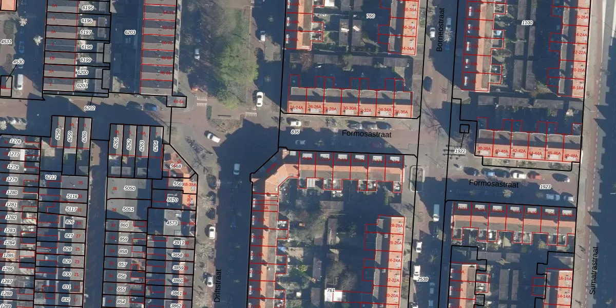 Het perceel waarop Formosastraat 9 staat heeft een oppervlakte van 4620 m². Dit is een zeer groot perceel. De perceeloppervlakte wordt geregistreerd door het Kadaster. Gedetailleerde informatie over de maten van dit perceel kunt u vinden in het rapport Kadastrale kaart met maatvoering van Formosastraat 9.