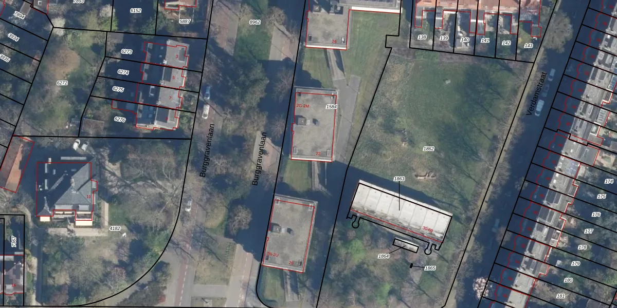 Het perceel waarop Fruinlaan 22 staat heeft een oppervlakte van 2885 m². Dit is een zeer groot perceel. De perceeloppervlakte wordt geregistreerd door het Kadaster. Gedetailleerde informatie over de maten van dit perceel kunt u vinden in het rapport Kadastrale kaart met maatvoering van Fruinlaan 22.