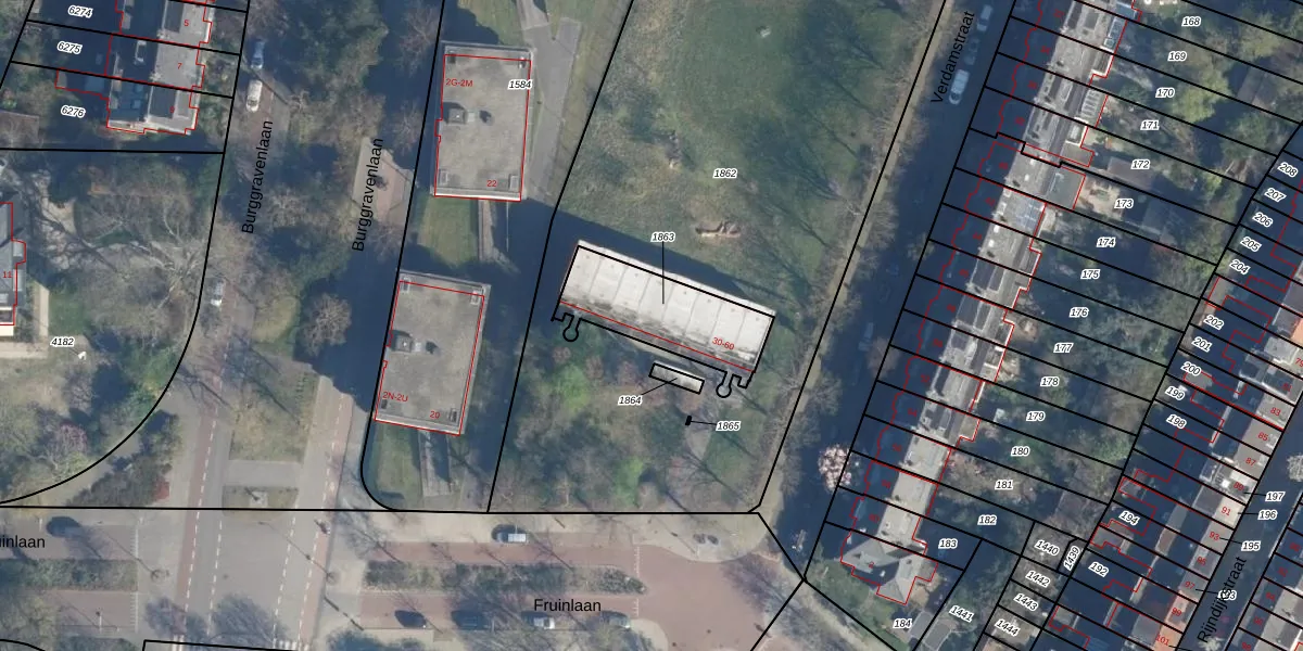 Fruinlaan 38 is gelegen op kadastraal perceel LDN01Q1863. Deze kadastrale aanduiding is uniek en wordt gebruikt door het Kadaster om eigendomsrechten en andere zakelijke rechten vast te leggen. Het perceel maakt onderdeel uit van de kadastrale gemeente Leiden.