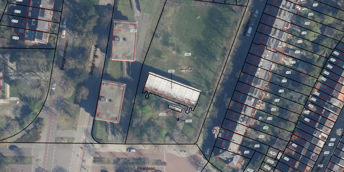 Fruinlaan 56 is gelegen op kadastraal perceel LDN01Q1863. Deze kadastrale aanduiding is uniek en wordt gebruikt door het Kadaster om eigendomsrechten en andere zakelijke rechten vast te leggen. Het perceel maakt onderdeel uit van de kadastrale gemeente Leiden.