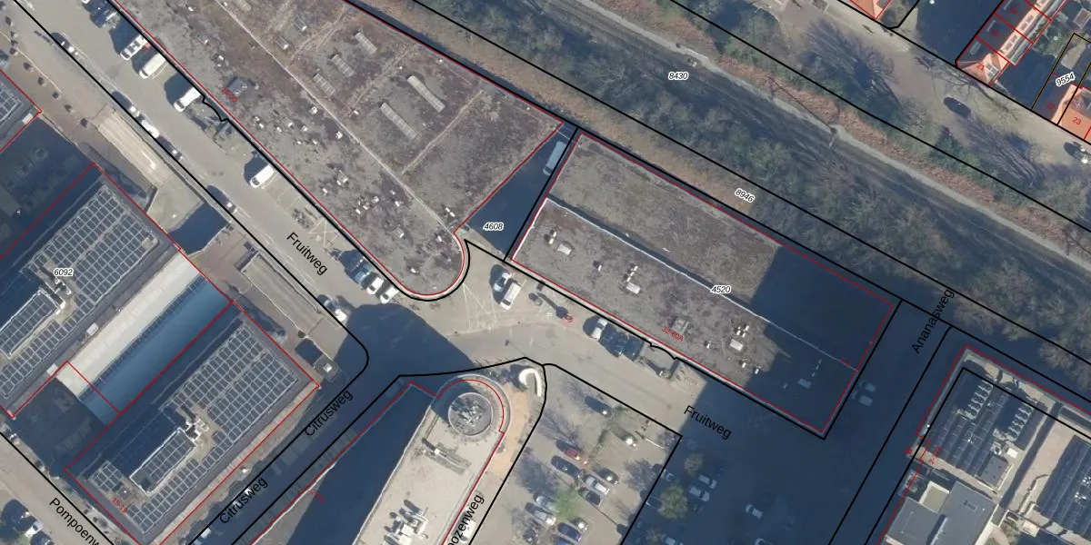 Het perceel waarop Fruitweg 34 staat heeft een oppervlakte van 1960 m². Dit is een zeer groot perceel. De perceeloppervlakte wordt geregistreerd door het Kadaster. Gedetailleerde informatie over de maten van dit perceel kunt u vinden in het rapport Kadastrale kaart met maatvoering van Fruitweg 34.