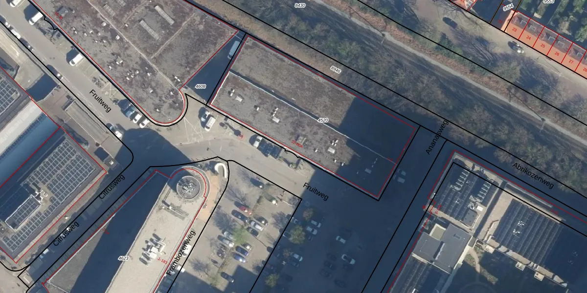 Het perceel waarop Fruitweg 44 staat heeft een oppervlakte van 1960 m². Dit is een zeer groot perceel. De perceeloppervlakte wordt geregistreerd door het Kadaster. Gedetailleerde informatie over de maten van dit perceel kunt u vinden in het rapport Kadastrale kaart met maatvoering van Fruitweg 44.