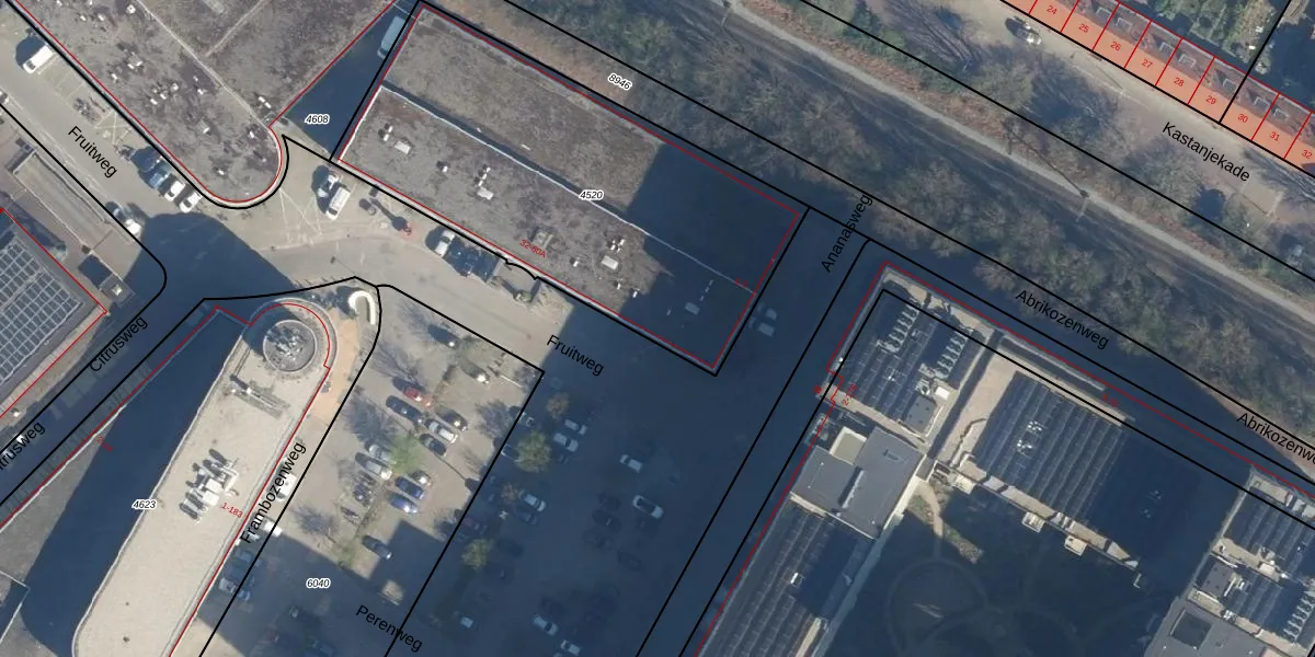 Het perceel waarop Fruitweg 58 staat heeft een oppervlakte van 1960 m². Dit is een zeer groot perceel. De perceeloppervlakte wordt geregistreerd door het Kadaster. Gedetailleerde informatie over de maten van dit perceel kunt u vinden in het rapport Kadastrale kaart met maatvoering van Fruitweg 58.